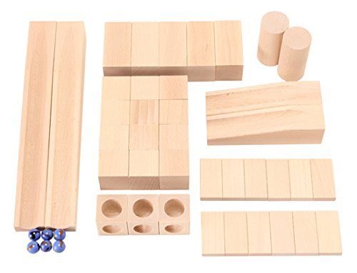 - ●内容:積み木26個、ドミノ板12枚、ガラスのビー玉6個