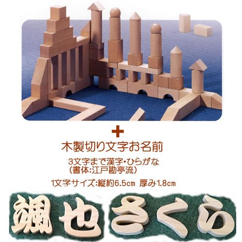 - 「積み木」・「赤ちゃんのお名前(木製切り文字)漢字・ひらがな3文字まで」のセット。
