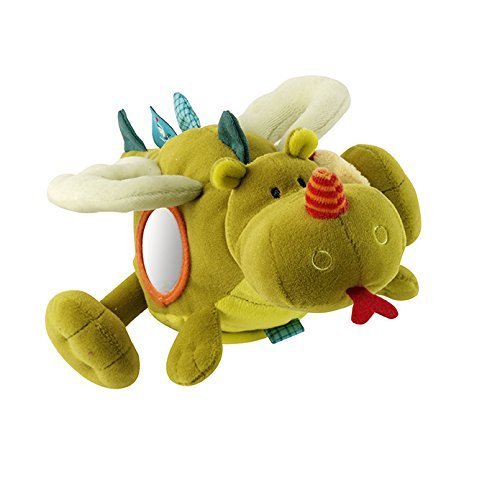 Walter is an interactive rattle that stimulates little ones' hearing, sight and touch. His gentle sound and soft fabric construction is easy on parents' eardrums. Promotes development of the senses via different noises and materials (crinkle noise in the wings and forelegs, rattle in the hind legs, bell in the belly, squeaky in the muzzle). Also includes a mirror for exploration of self-reflection.