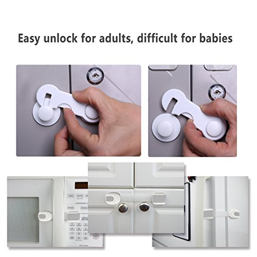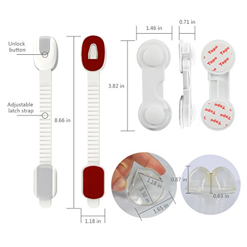 - 複数の信頼性の高いベビー校正: 8安全ロックと、柔軟でストラップを使用ではうまくフラット/ラウンドします、さらにはコーナー部分に使えます。ご自分で長さを調整することができ、垂直または水平配置。2pcsユニークなバックルです。および8つコーナープロテクター・コンボ。このベビー安全ロックのスーパーバリューパックは、子が広範囲のアプライアンスを校正、家電機器、家具、ドア、引き出し、キャビネット、トイレシート、オーブン、冷蔵庫、食器洗い機や詳しい情報を得ることができます。