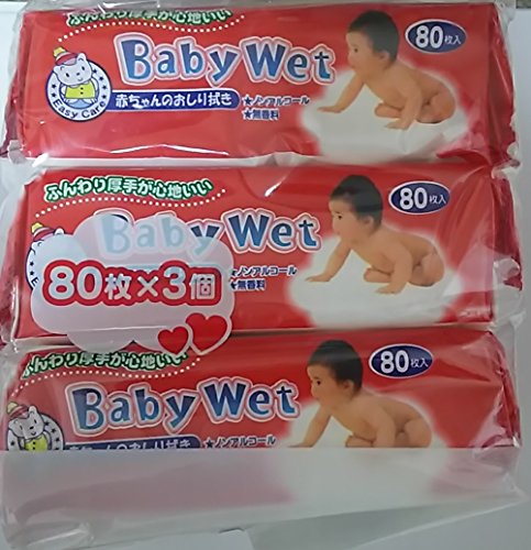 ふんわり厚手が心地いい 赤ちゃんのおしり拭き ノンアルコール・無香料 80枚入×3パック