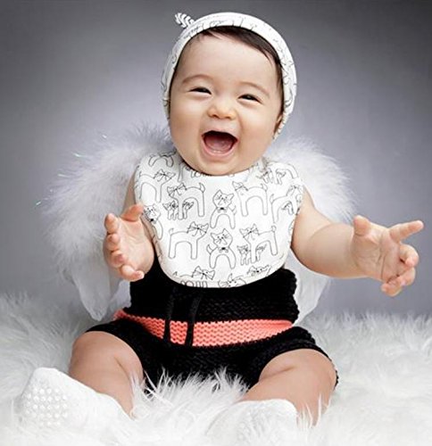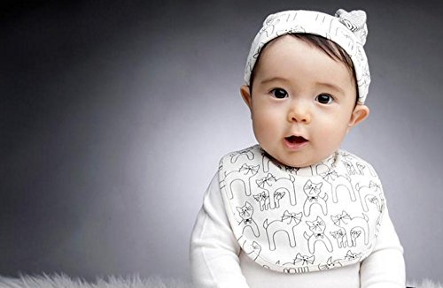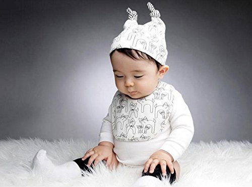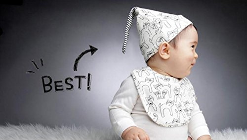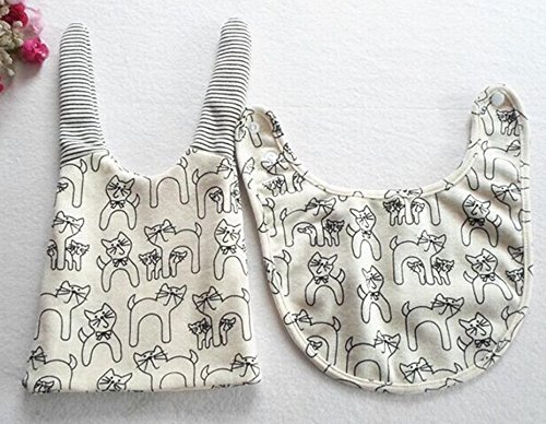 (ケイグラッソ) ベビー 帽子 & スタイ 2点 セット ネコ 三角 柄 耳付き プレゼント 出産祝い ギフト キッズ ぼうし よだれかけ 猫 ガーランド 男の子 女の子ユニセックス (01. ネコ (ホワイト))