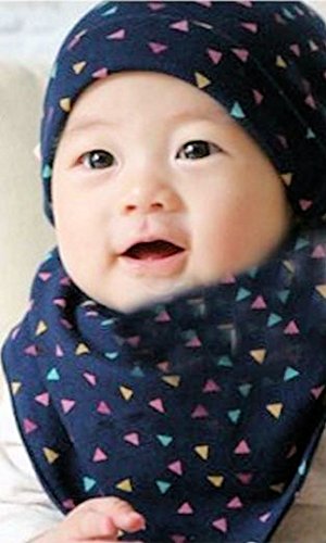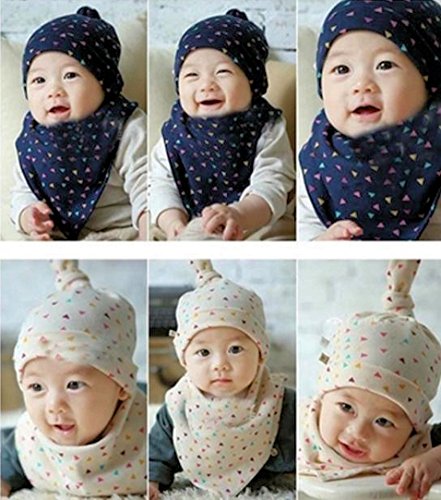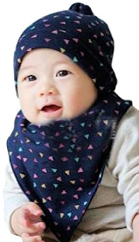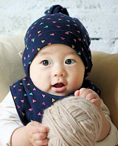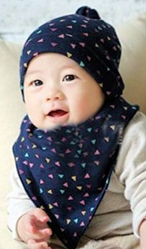 (ケイグラッソ) ベビー 帽子 & スタイ 2点 セット ネコ 三角 柄 耳付き プレゼント 出産祝い ギフト キッズ ぼうし よだれかけ 猫 ガーランド 男の子 女の子ユニセックス (03. 三角 (ネイビー))