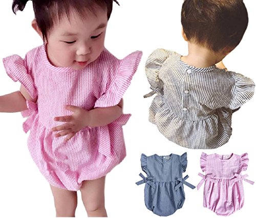 - フリルにリボンもついたとってもガーリーなロンパース♪夏らしいノースリーブデザインがより可愛さをUPさせてくれます♪