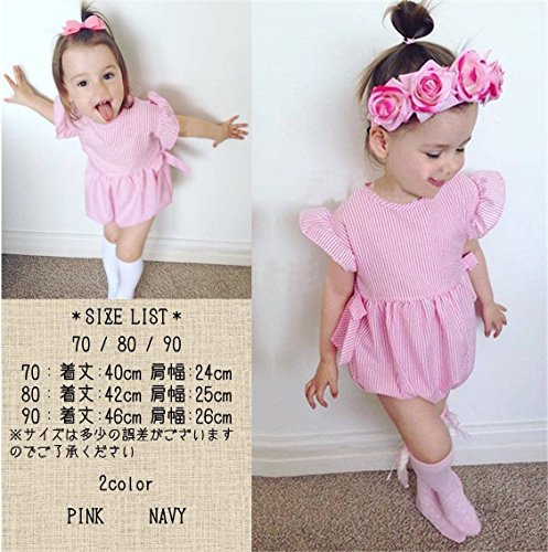 (ケイグラッソ) 2016 夏 ベビー ロンパース フリル リボン 付き キッズ 女の子 70 80 90 ピンク ネイビー (6. ネイビー 90)