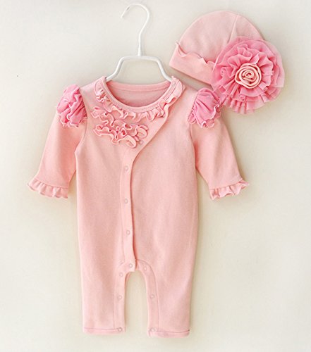 (ケイグラッソ) ベビー フリル ロンパース & 帽子 2点 セット 前開き 新生児 ベビー服 女の子 セレモニー (80 (9M), ピンク)