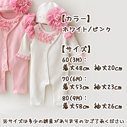 - カラーはキュートなピンクと清楚なホワイトの2カラー、サイズは60(3M)・70(6M)・80(9M)の3サイズをご用意しております♪ご自宅用に、お友達やお孫さんへのギフトにオススメの1枚です♪