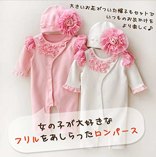 - 女の子が大好きなフリルをあしらったロンパースはちょっとしたお出かけやプレゼントにピッタリ♪大きいお花がついた帽子もセットでいつものお出かけをより可愛く・楽しくさせてくれます♪