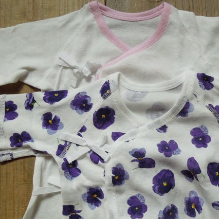 すみれ柄が、かわいいコンビ肌着