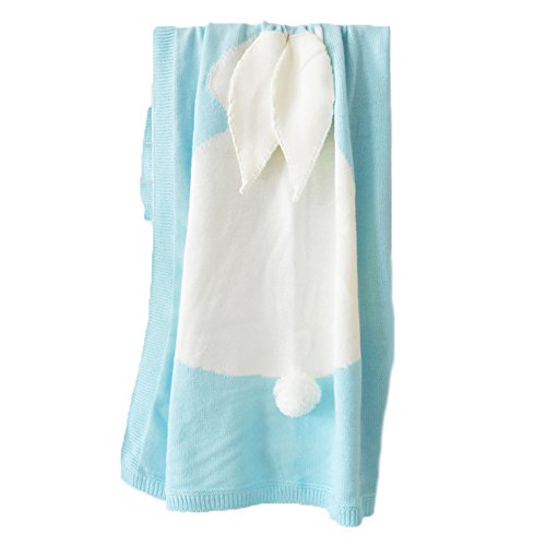 かわいい ベビー キッズ用 ブランケット ニット毛布 ウサギ 膝掛 出産祝い ギフト クリスマスプレゼント (ブルー)