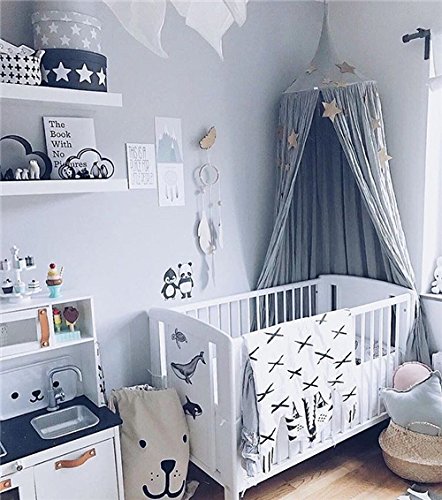 お姫様気分 北欧超キュートキャノピー スリーピングカーテン 蚊帳 遊ぶテント 吊るし具付 (グレー)
