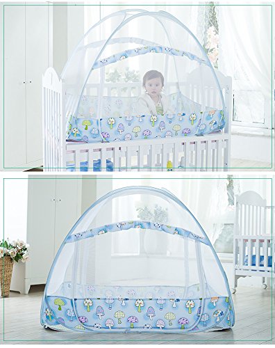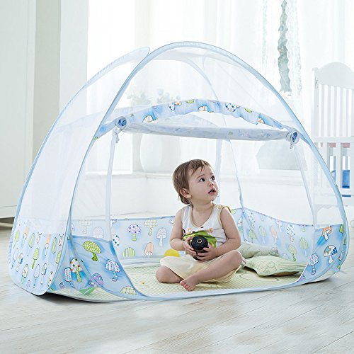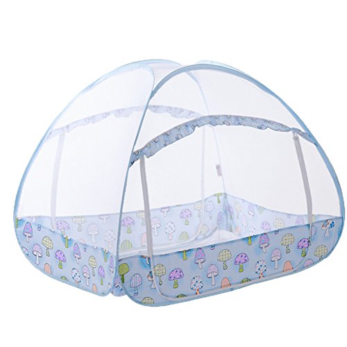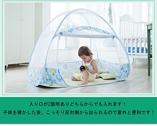 子供用 蚊帳 ワンタッチ式 モスキートネット エアコン 風よけ 冷風除け 折りたたみ きのこ柄 (約120cmx70cmx高さ85cm)
