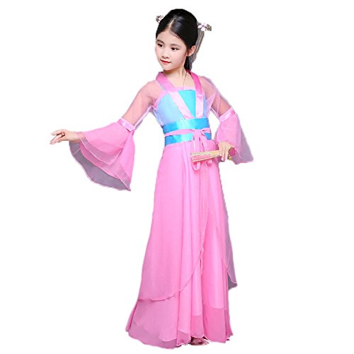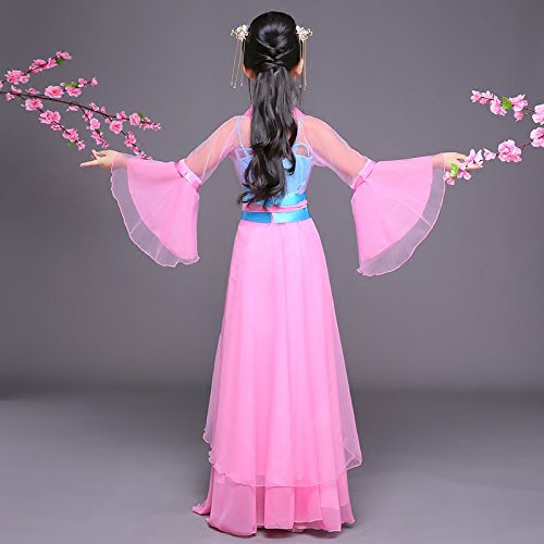 お姫様になりきり ハロウィン クリスマスパーティーグッズ 子供用 宮廷お姫様 仙女 フェアリー風 ワンピース 発表会 演奏会などに (100cm, ピンク)