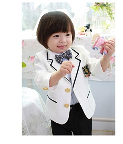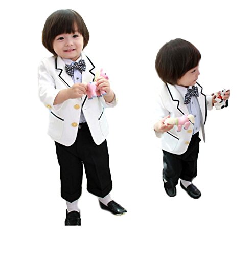 本格 フォーマルタキシードスーツ4点セット  男の子スーツ ジェントルマン   発表会  入学式 卒業式 (100サイズ, コート+シャツ+ロングパンツ +蝶ネクタイ)