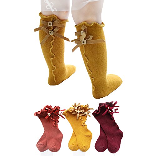 ベビー キッズ 女の子 ソックス 3足セット リボン フリル 靴下 無地 おしゃれ フォーマル 七五三 発表会 結婚式 入園式 入学式 卒園式 卒業式 (S 10cm(目安0-1歳), イエロ系)