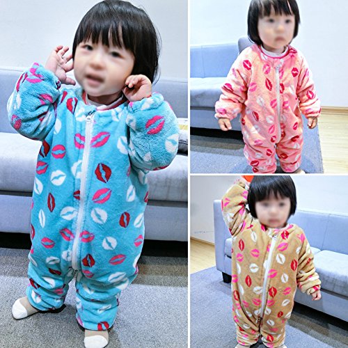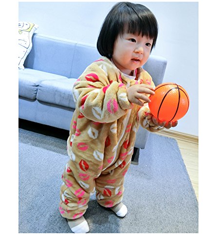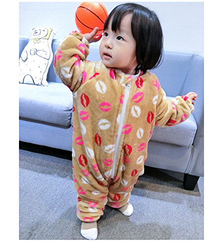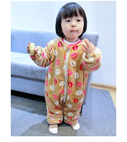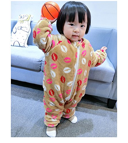 ベビー キッズ キス柄 子供服 長袖 カバーオール ロンパース ボアフリース 防寒 あったか ふわふわ パジャマ 寝袋 室内着 ルームウエア カバーオール 出産祝い ギフト 80 90cm (100cmサイズ, カーキ風)