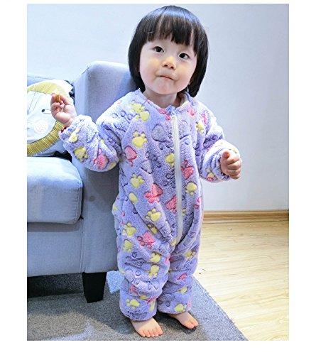 ベビー キッズ 子供服 長袖 カバーオール ロンパース ボアフリース 防寒 あったか ふわふわ パジャマ 寝袋 室内着 ルームウエア カバーオール 出産祝い ギフト 80 90cm (110cmサイズ, パープル風)