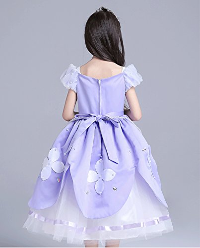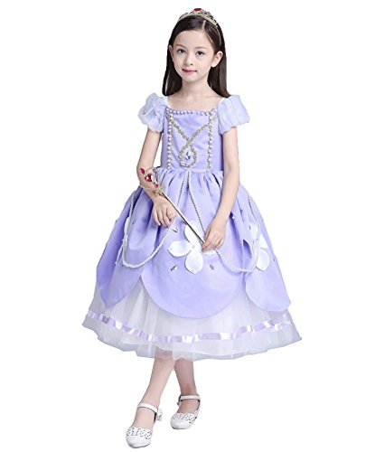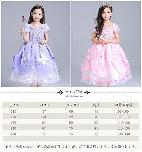 プリンセスなりきり フォーマル子供 ドレス お姫様ドレス 女の子 なりきり キッズドレス ソフィア ワンピース+王冠+杖 (120, パープル)