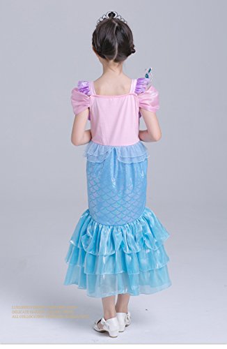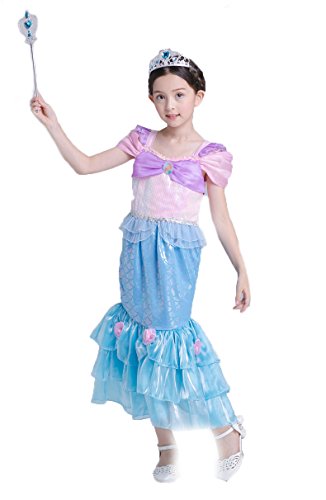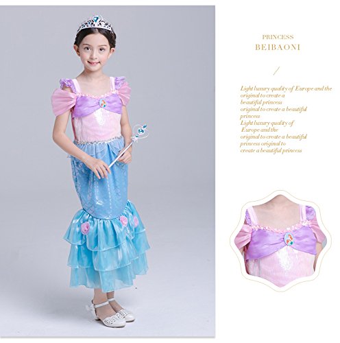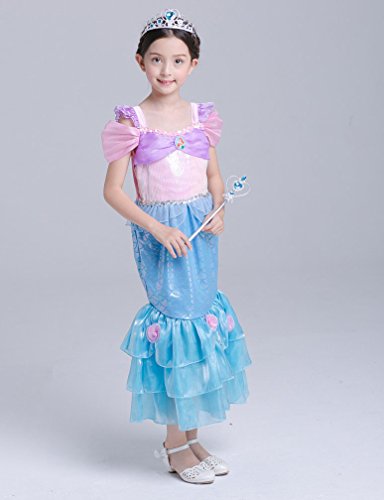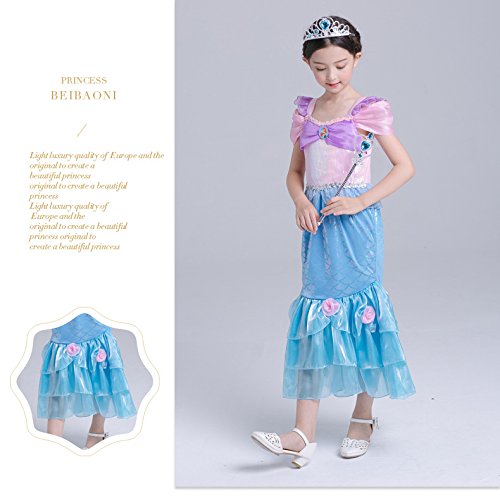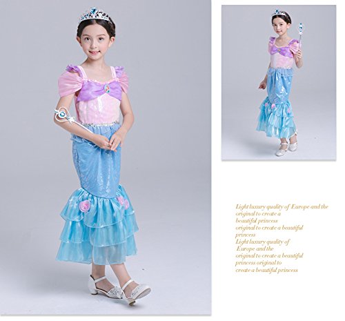 プリンセスなりきり フォーマルドレス お姫様ドレス 女の子 キッズドレス アリエル人魚姫 ワンピース+王冠+杖 (130サイズ)