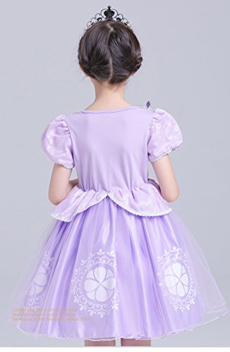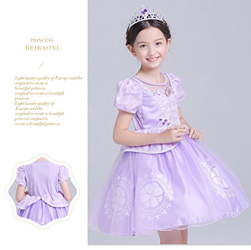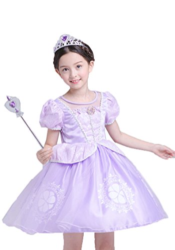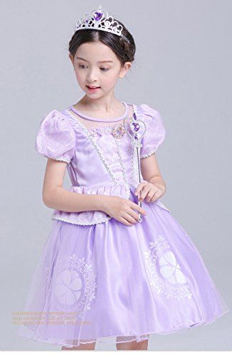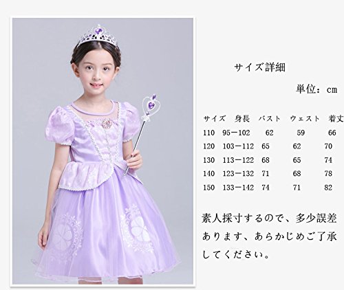 プリンセスなりきり フォーマルドレス お姫様ドレス 女の子 キッズドレス ソフィア ワンピース+王冠+杖 (150サイズ, パープル系)
