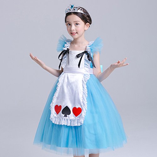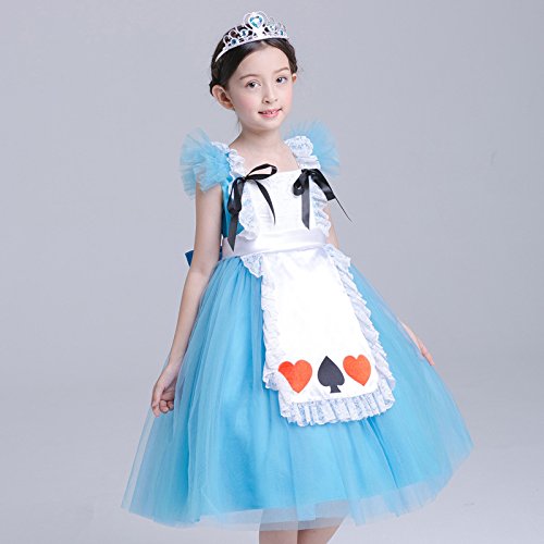 プリンセスなりきり フォーマルドレス お姫様ドレス 女児 キッズドレス アリス風 ワンピース+王冠+杖 (140サイズ)