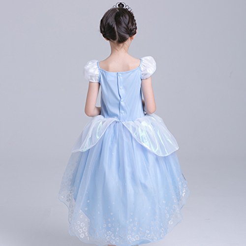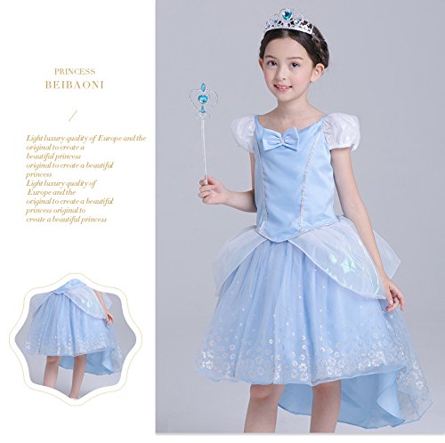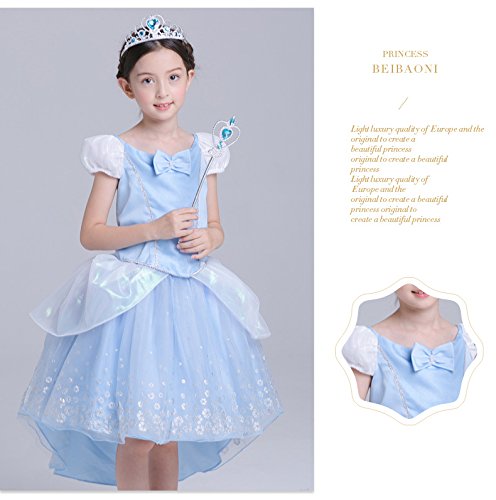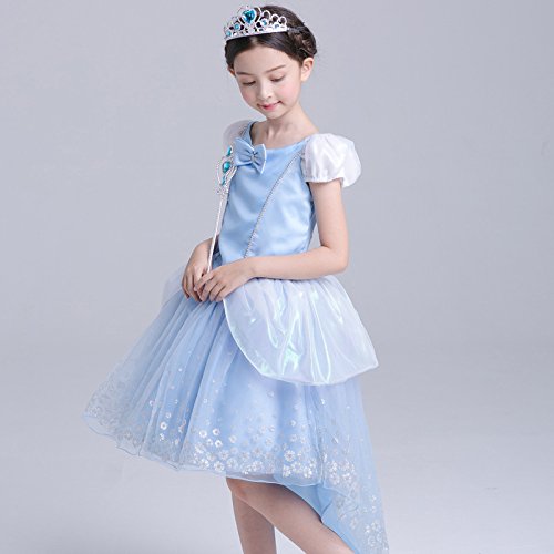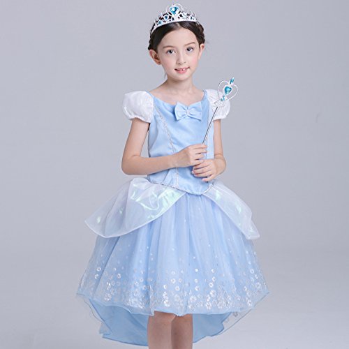 プリンセスなりきり フォーマルドレス お姫様ドレス 女児 キッズドレス シンデレラ風 ワンピース+王冠+杖 (110サイズ)