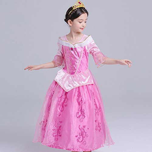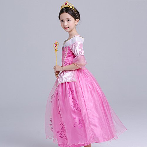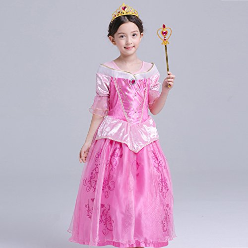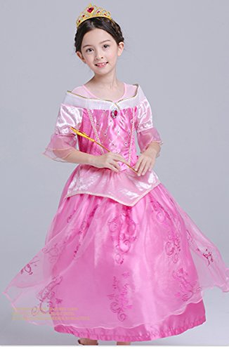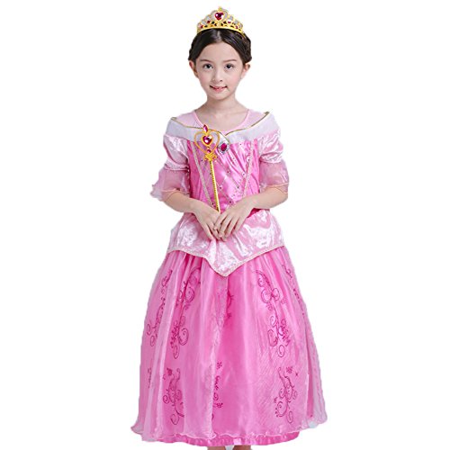 プリンセスなりきり フォーマルドレス お姫様ドレス 女児 キッズドレス オーロラ姫風 ワンピース+王冠+杖 (150サイズ)