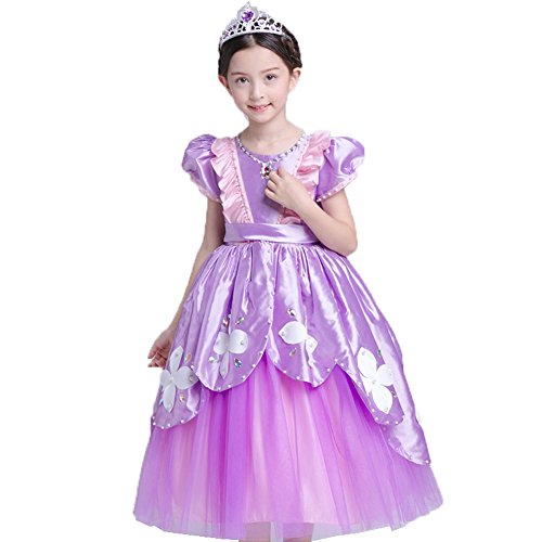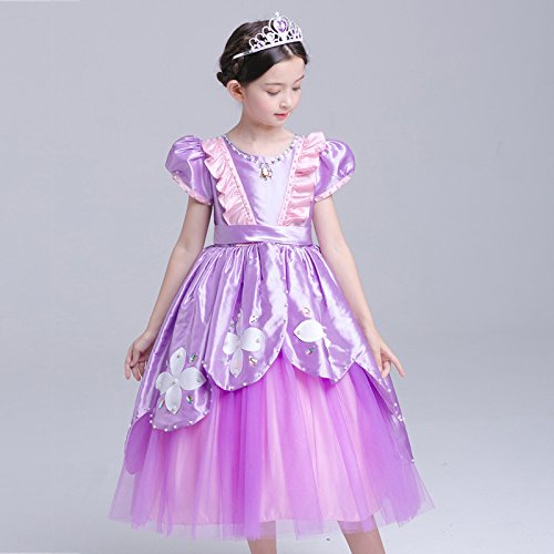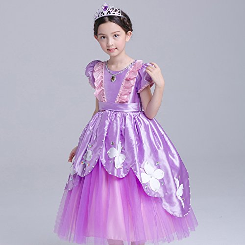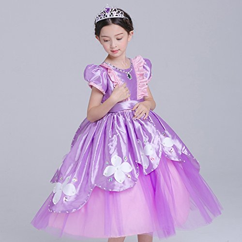 プリンセスなりきり フォーマルドレス お姫様ドレス 女児 キッズドレス ソフィア風 ワンピース+王冠+杖 (140サイズ)