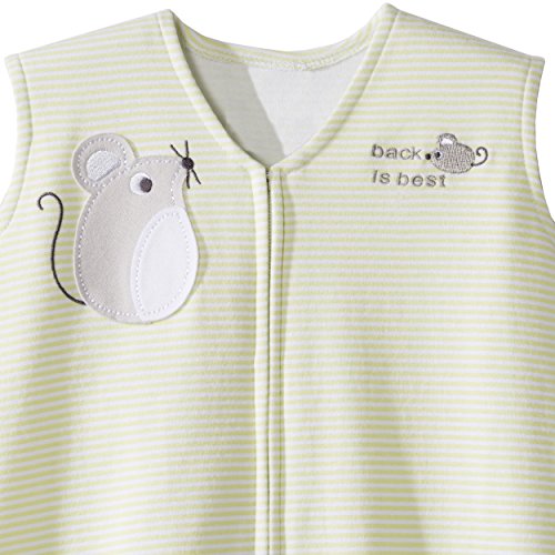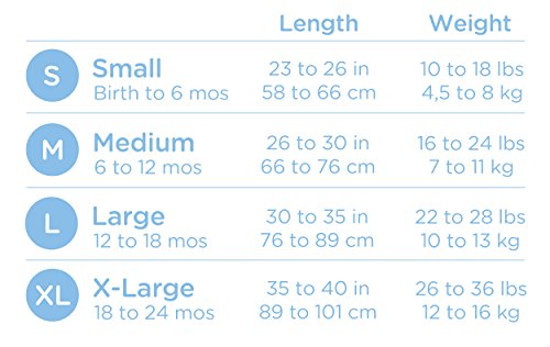 Use over regular sleepwear to take the place of loose blankets;100% cotton interlock. TOG: 0.5. Size small fits 10-18 lbs; size medium fits 16-24 lbs; size large fits 22-28 lbs; size extra large fits 26-36 lbs;Unzips from the bottom for easy diaper changes. Generous sack design allows room for kicking, but cannot be kicked off so baby stays warm all night. Sleeveless design reduces the risk of overheating;#1 Choice of hospitals. Used by hospitals nationwide for safe sleep education;Back is Best embroidery reminds caregivers to place baby on his or her back