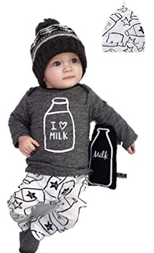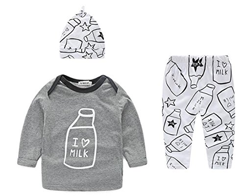 - ミルク柄がとっても可愛い 長袖Tシャツ +パンツ+ 帽子 の 3点セット! 帽子をかぶればオシャレコーデの完成です!