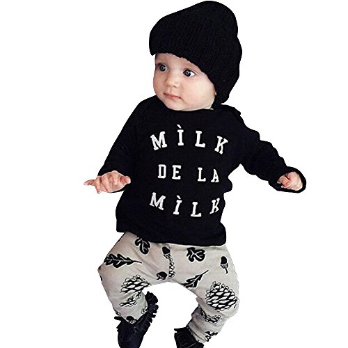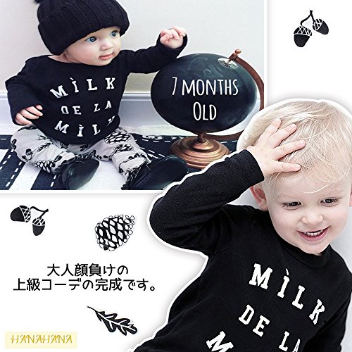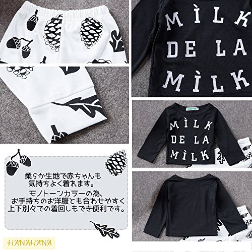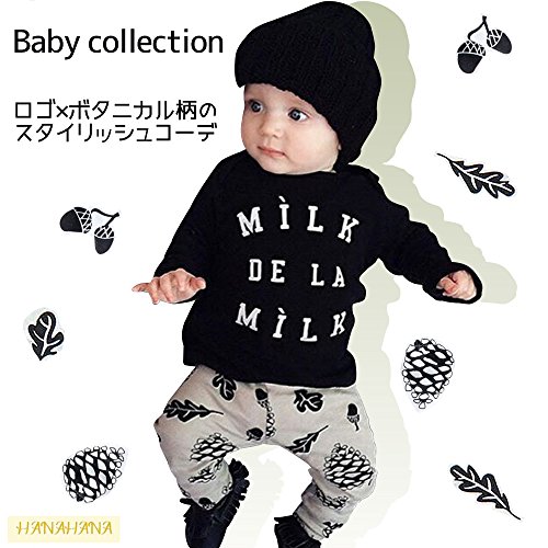 (ハナハナ) HANAHANA 綿 やわらか セットアップ 長袖 Tシャツ & パンツ 上下 セット 英字 ロゴ 松ぼっくり どんぐり プリント 子供 キッズ べビー 服 男の子 i021 (70)