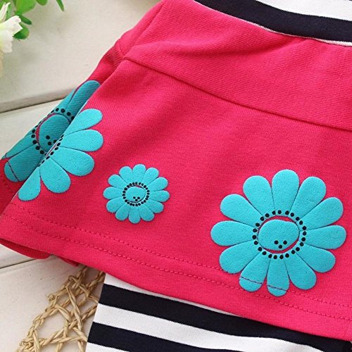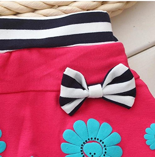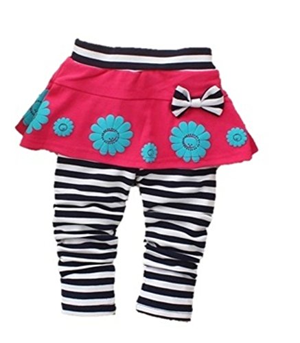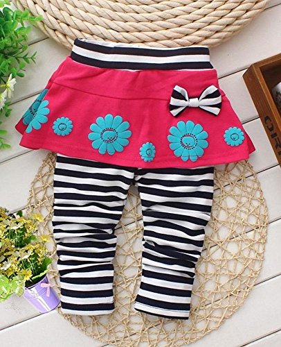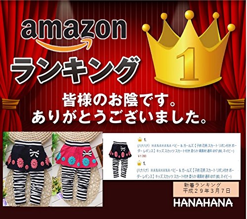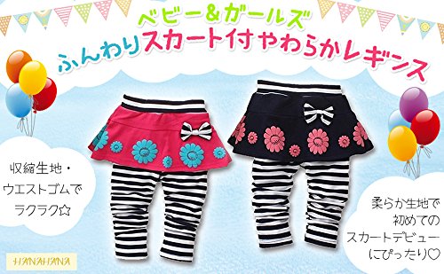 (ハナハナ) HANAHANA ベビー & ガールズ【 子供 花柄 スカート リボン付き ボーダー レギンス 】キッズ スカッツ スカート付き 柔らか 綿素材 通年 i017 (90, ピンク)