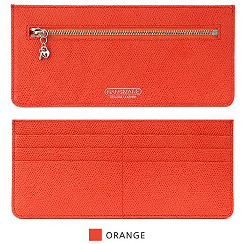 HANSMARE SLIM WALLET 長財布 レディース メンズ 天然牛革 チャームタイプドクロSET (Orange)