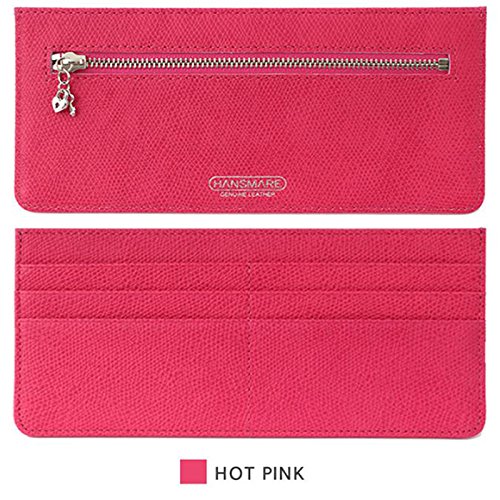 HANSMARE SLIM WALLET 長財布 レディース メンズ 天然牛革 チャームタイプドクロSET (HotPink)