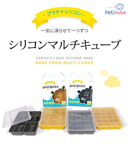 [Petinube] (プチヌーベ) あんぜんシリコンマルチキューブ 離乳食小分けトレー (Petinube Silicone Multi Cubes) (6個分け, グレー)