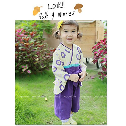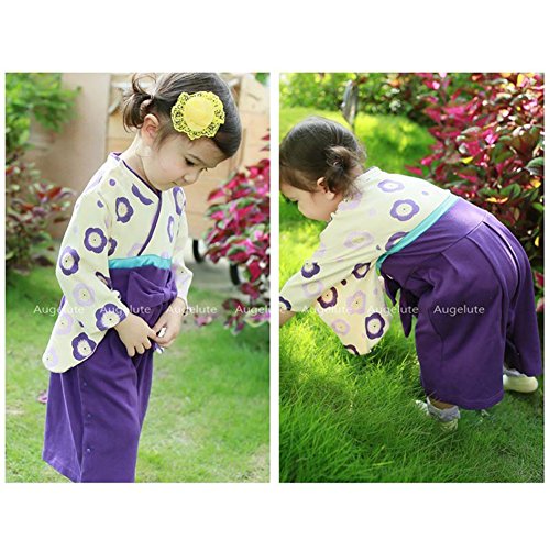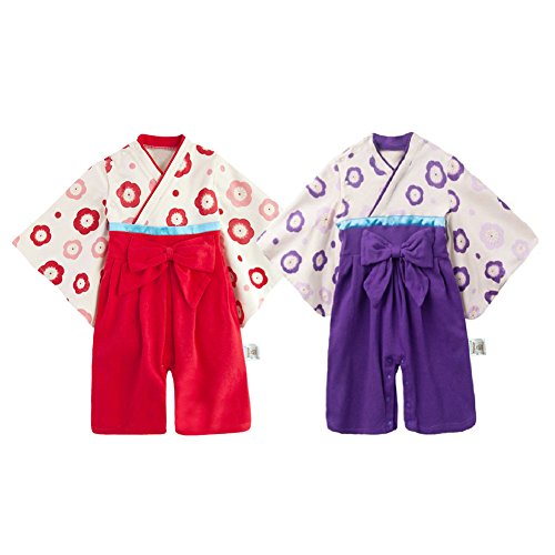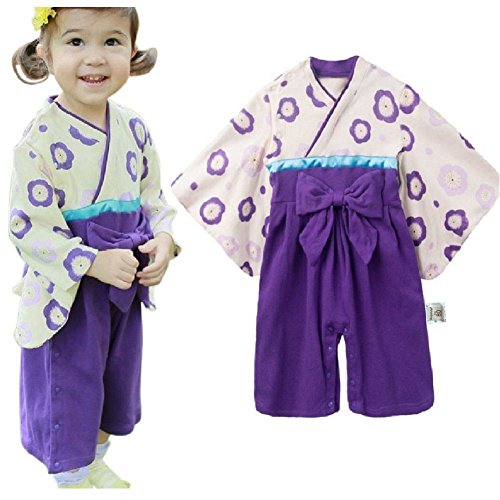HAOCOO ベビー キッズ 袴風 女の子 着物 和装 カバーオール ベビー服 ロンパース フォーマル 入学式 発表会 結婚式 七五三 (70cm, パープル)