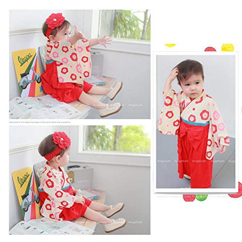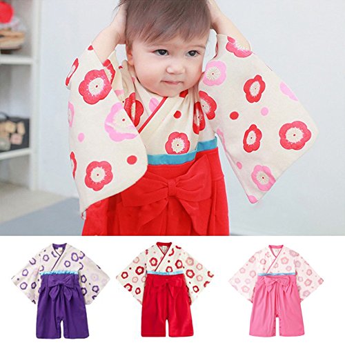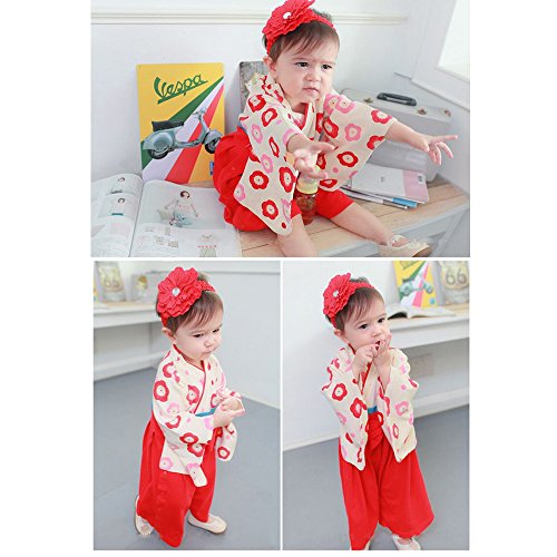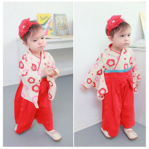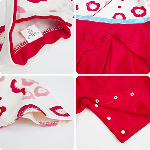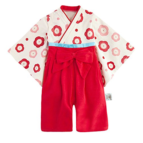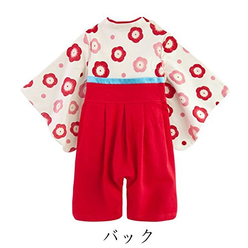 HAOCOO ベビー キッズ 袴風 女の子 着物 和装 カバーオール ベビー服 ロンパース フォーマル 入学式 発表会 結婚式 七五三 (70cm, レッド)