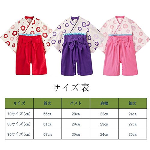 - 紅梅模様が可愛らしく映える前開き全開タイプのベビー用袴ロンパースです。