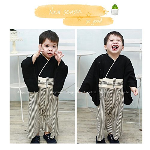 HAOCOO 男の子 カバーオール ベビー服 着物 和装 節句 写真 ロンパース (90cm(15-24ヶ月))