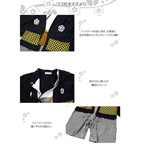 HAOCOO ベビー キッズ 子供服 男の子 フォーマル 紋付袴風 カバーオール ロンパース 和服 長袖 お正月 百日祝い 出産祝い ギフト 結婚式 誕生日 お食い初め お宮参り 記念日 七五三 (80サイズ)