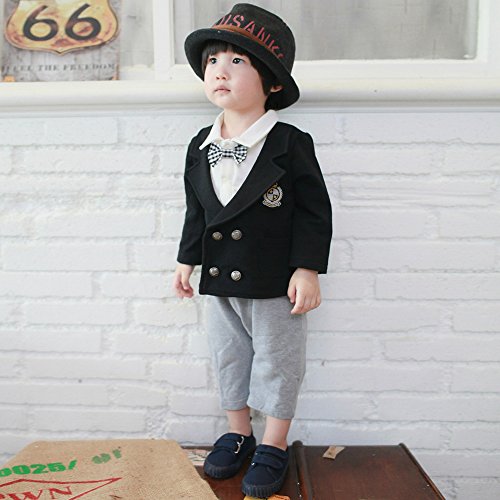 HAOCOO ベビー 子供服 キッズ 男の子 フォーマル カバーオール ロンパース 和服 蝶ネクタイ付き 長袖 百日祝い 出産祝い 記念日 七五三 (80cm)