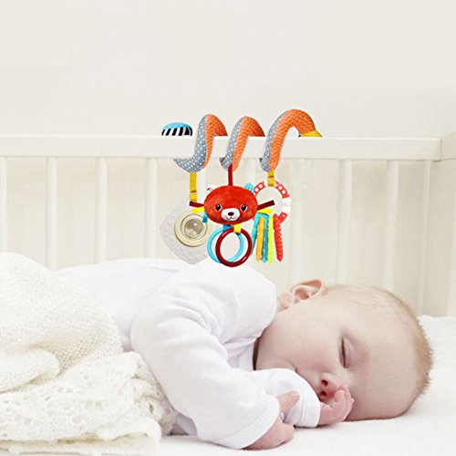 HAOUN ベビーカー用おもちゃ ベビーベッド用 幼児 噛む スパイラル 可愛い ぶら下げ 虹リング マッサージ 安全無毒 感覚器官 運動機能 豊かな色彩 ベビー用寝具- フォックス