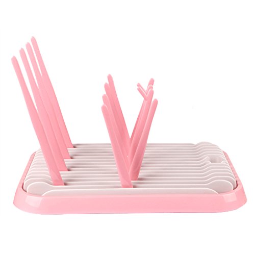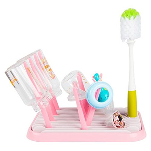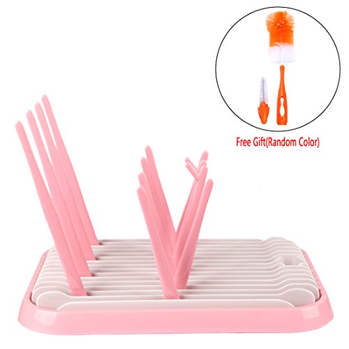 HAOUN 哺乳瓶ラック 水切り 排水ラックベビー用品乾燥ボックス 乾燥ラックほ乳びん 乳首 ボトル収納ボックス折りたたみ式 コンパクト 乾燥トレイ 哺乳瓶ドライヤー ブラシ付き ピンク
