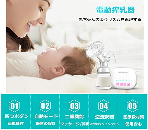 - 【赤ちゃんの飲むリズムを忠実に再現する】さく乳の始めにおっぱいをやさしく刺激し、準備を整える「準備モード」。さく乳モードでは強さを9段階に調節できて、 赤ちゃんが吸うような心地よさで自分のペースでさく乳できます。片側の流れデザインは、おっぱいの逆流が引き起した汚染をよく防ぎます。