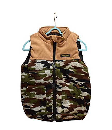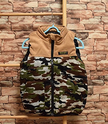 - カモフラ柄(迷彩)と、コールテン生地の切替がおしゃれなキッズ用ベストです。秋冬にぴったりな中綿入り。