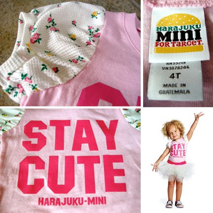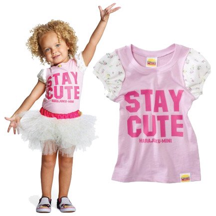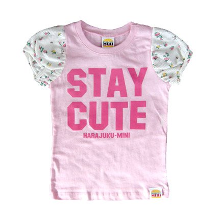 - アメリカ発、日本未上陸の個性的で奇抜なデザインが人気のグウェン・ステファニープロデュースHARAJUKU MINIの商品です♪ STAY CUTE=可愛いままでいてねとプリントされたTシャツに小花柄のパフスリーブがとってもキュート♪