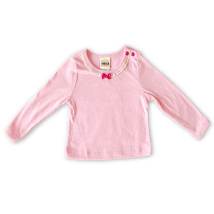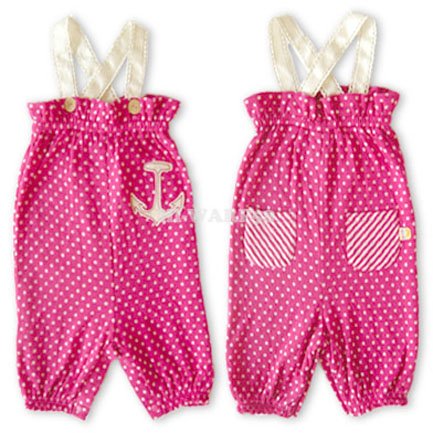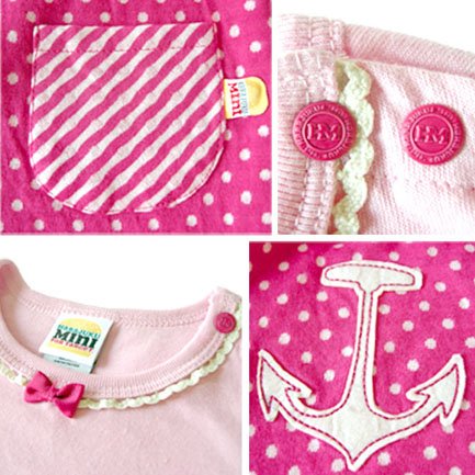- 小さなリボンが付いたピンク色の長袖シャツとドット柄とアンカーアップリケがかわいらしい、ハラジュクミニのセットアップです♪