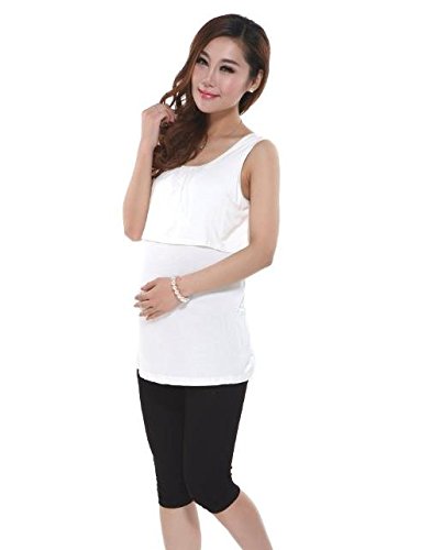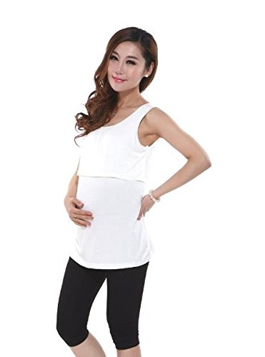 (HARU)授乳用 タンクトップ 片手で簡単に授乳ができるクロスオープンタイプ 授乳服 着丈65cm (ホワイト)
