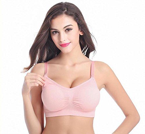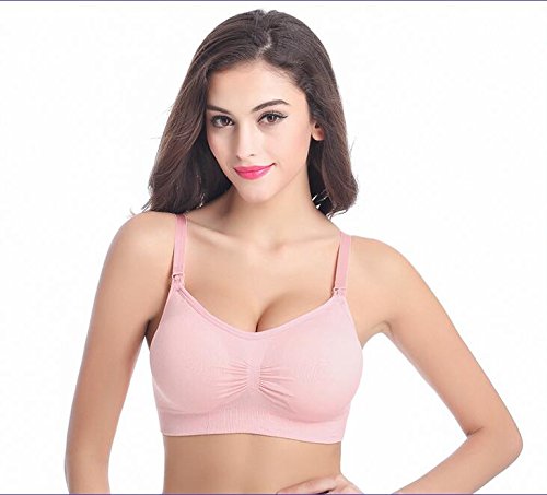 【HARU】マタニティ ママ 授乳 ブラジャー 授乳しやすい ストラップオープンタイプ (ノンワイヤー パッド取り外し サイズ調整可能 ) (XL, ピンク)
