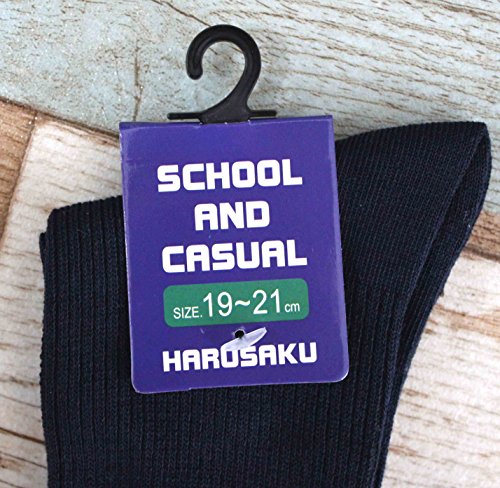 (ハルサク) HARUSAKU 4足組 児童 園児 スクールソックス 無地 靴下 13 ~ 21cm 男の子 女の子 (19cm - 21cm, 紺)